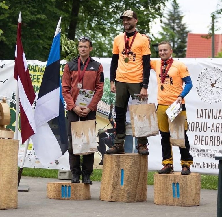 Birželio 5-7 d. Carnikavoje (Latvija) vykusiame Baltijos šalių laipiojimo medžių laja čempionate (BSTCC 2025) laurus skynė mūsų asociacijos nariai Kęstutis Danauskas ir Tadas Norkus.