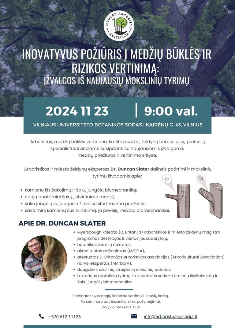 Lietuvos arboristų asociacija, švenčianti savo veiklos 10-metį, kviečia susipažinti su naujausiomis įžvalgomis medžių priežiūros ir vertinimo srityse.
